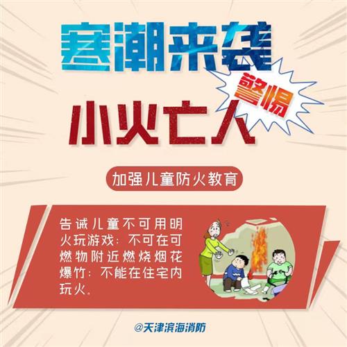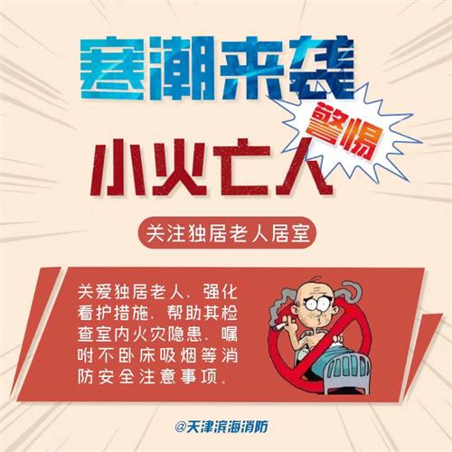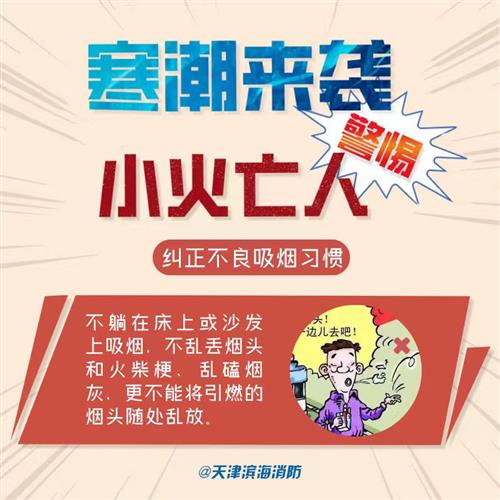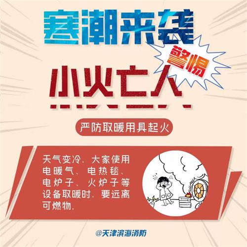 近日寒潮来袭,天干物燥,火灾风险增加,而居民家庭已成为了火灾事故,特别是“小火亡人”事故的重灾区。为此,滨海新区消防救援支队提醒您,要注意以下消防安全事项。