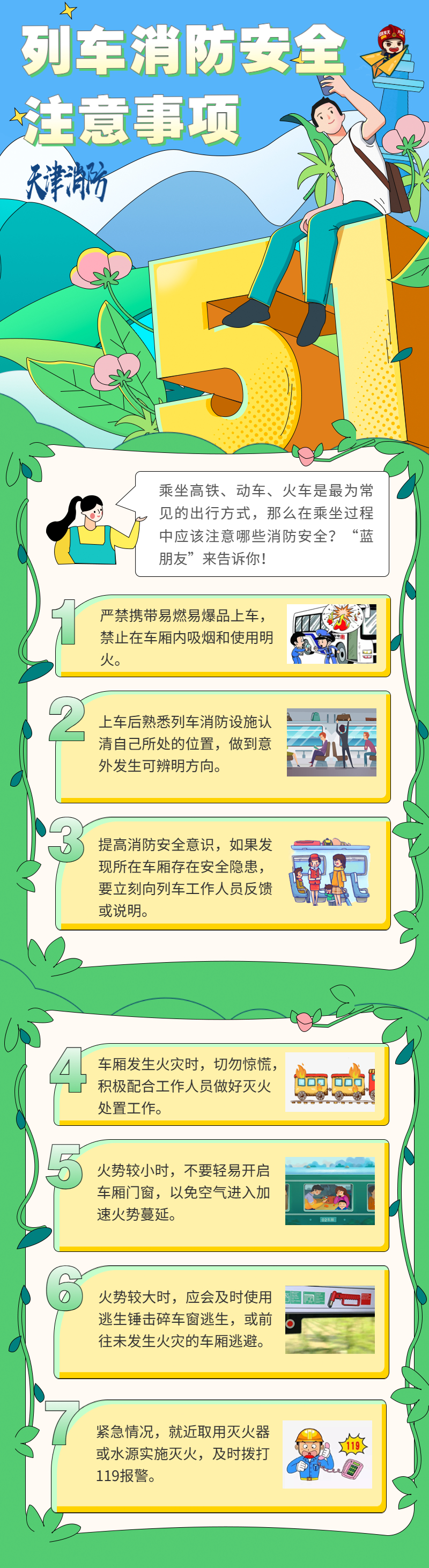 五一小长假将迎来出游热潮,你的高铁票订到了吗?乘坐列车出行应注意哪些消防安全事项呢?滨海消防告诉你。