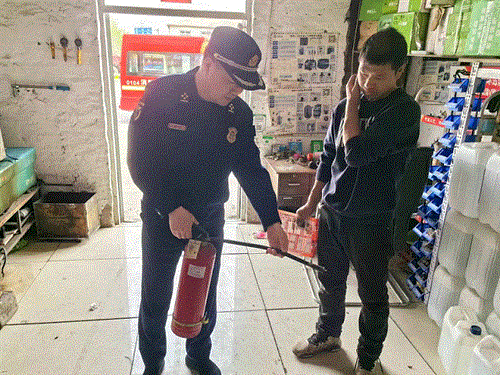 活动中,大队宣传人员走街串巷,走进临街门店、社区商店等“九小场所”开展消防安全宣传。针对“九小场所”存在的环境复杂、火灾隐患聚集、消防知识匮乏等现象,采取“查、宣结合”的方式,对场所内的安全隐患进行排查,并结合发现的隐患,运用通俗易懂的言语仔细讲解了日常用火、用电、用气安全注意事项,以及如何扑救初期火灾、灭火器的正确使用方法及火场自救逃生等消防知识,深入浅出讲述了消防安全的重要性和加强消防安全知识学习,提高自防自救能力的必要性。同时向各场所发放消防知识宣传彩页及张贴海报,一再嘱咐店主牢固树立消防安全意识,配备必要的消防器材装备并做好维护保养,经营生产场所不要住人,不在公共走道停放电动车或充电,注意用火用电用气安全,离电务必做到关火关电关煤气,遇到火灾要及时报警并组织人员疏散逃生等。