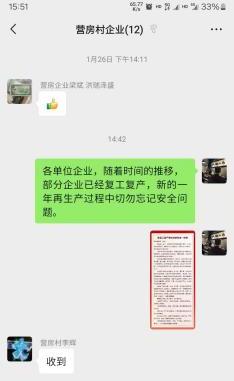 发送安全提示。支队制定《致复产复工单位消防安全一封信》,推动行业部门及管委会、街道、乡镇发至社会单位、九小场所工作群,提示复产复工消防安全。定制消防宣传条幅,在大型企业醒目位置张贴悬挂,时刻提醒员工注意消防安全,提示负责人加强重点区域自查力度和火灾防控力度,定期对消防设施器材检查和维护等,提升安全意识与应急能力。