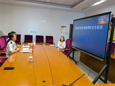 近日,滨海支队联合区教体局召开教育系统消防安全“明白人”暑期培训会,培训会采取“线上、线下”同步进行的方式,区教体局学校安全管理室、区教育综合保障服务中心负责人在主会场主持,各中小学、幼儿园、中高职学校、各开发区教育主管部门和泰达文教集团负责人1000余人通过视频会议“线上”参会。