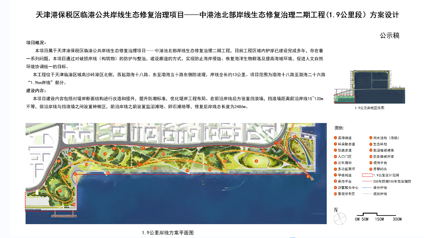 | 天津港保税区临港公共岸线生态修复治理项目--中港池北部岸线生态修复治理二期工程(1.9公里段)方案公示 |