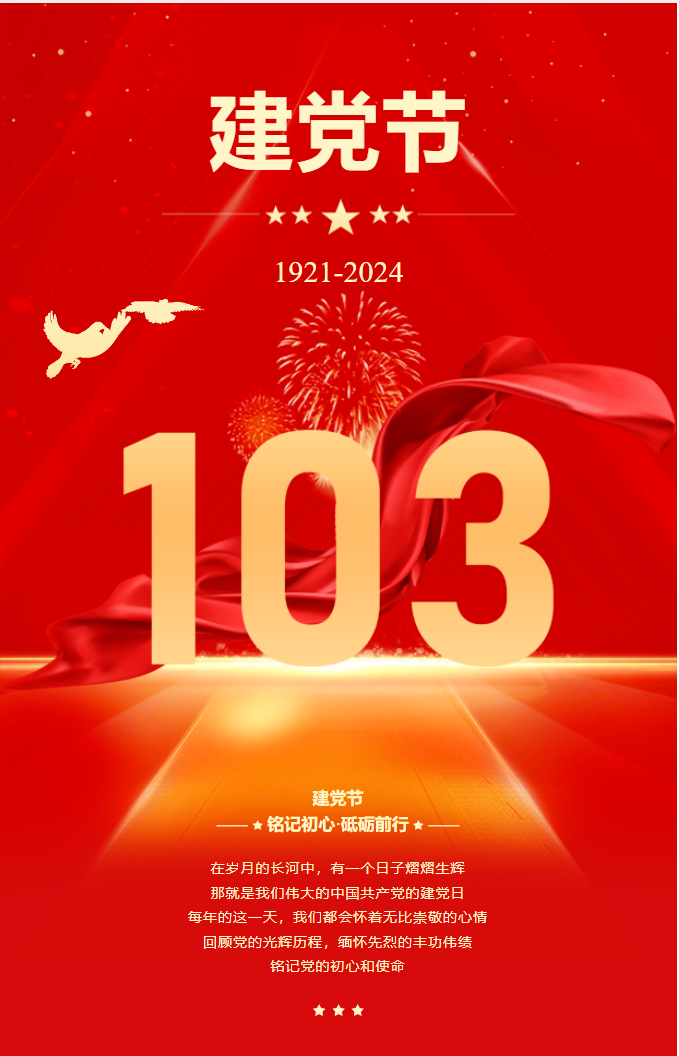 查看详情铭记初心·砥砺前行 在岁月的长河中,有一个日子熠熠生辉 那就是我们伟大的中国共产党的建党日 每年的这一天,我们都会怀着无比崇敬的心情 回顾党的光辉历程,缅怀先烈的丰功伟绩 铭记党的初心和使命