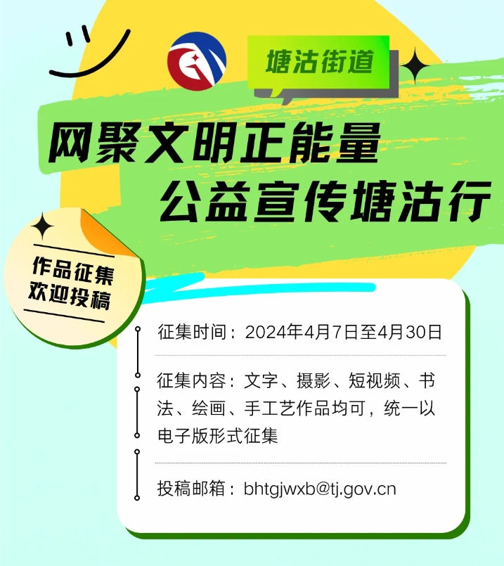 | 网络公益 | 快来投稿 “网聚文明正能量 公益宣传塘沽行”主题作品征集活动开始啦! |
