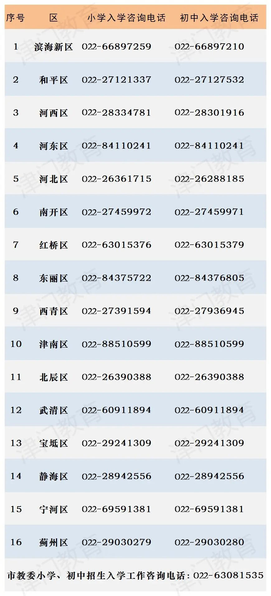附:2024年天津市义务教育阶段学校招生入学工作各区咨询电话