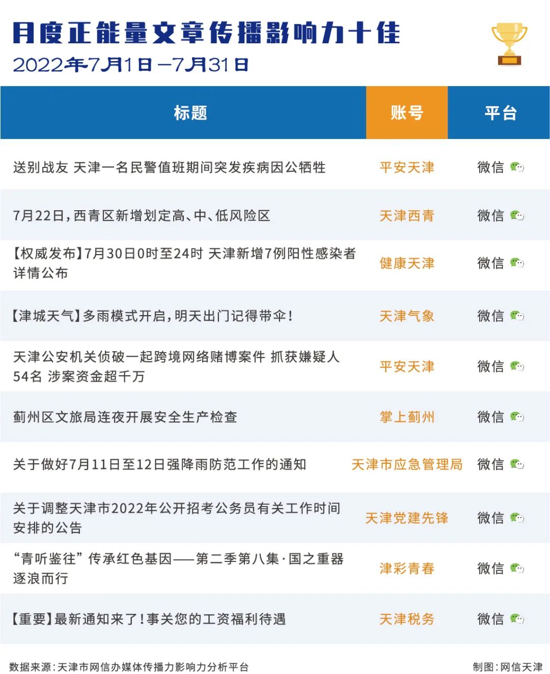 | 2022年7月份天津政务新媒体传播影响力排行榜 |