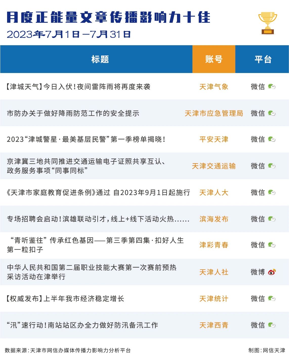 | 2023年7月份天津政务新媒体传播影响力排行榜 |