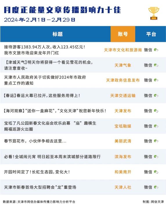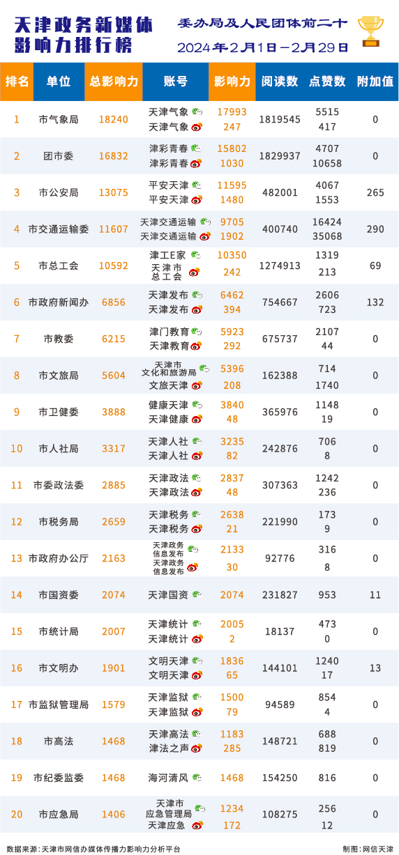 | 2024年2月份天津政务新媒体传播影响力排行榜 |