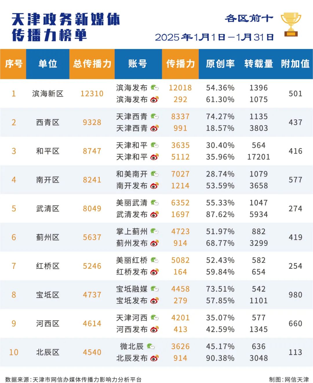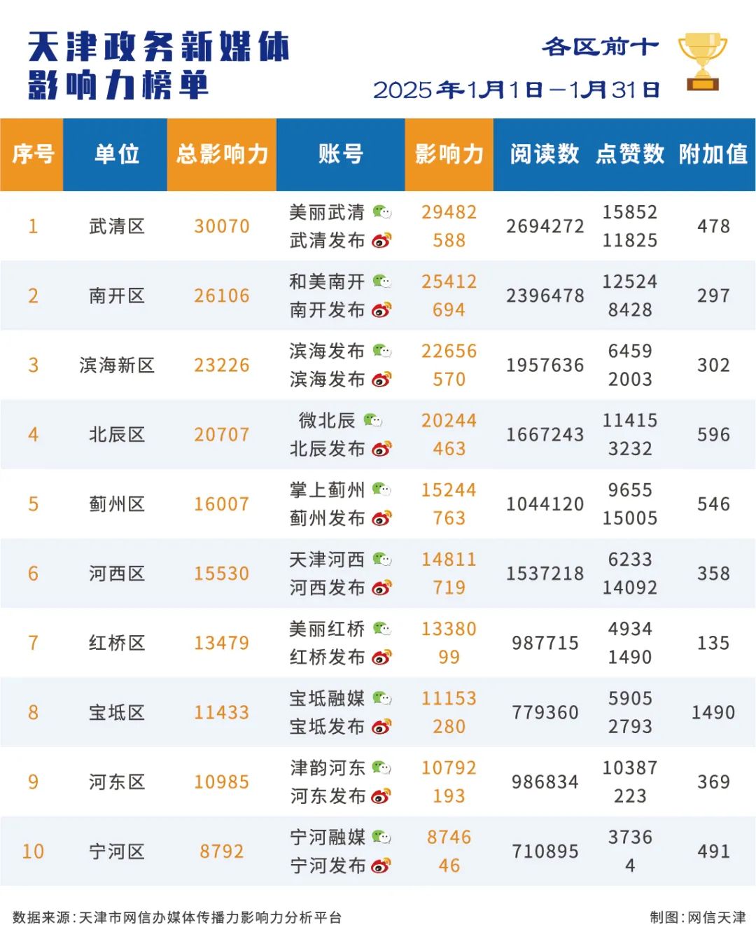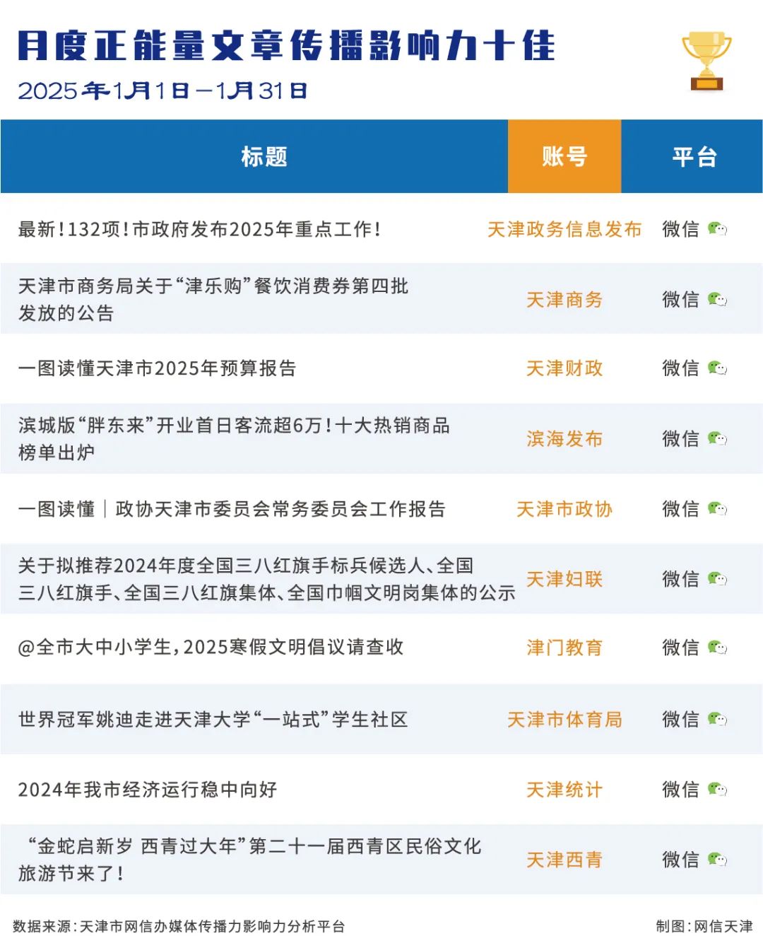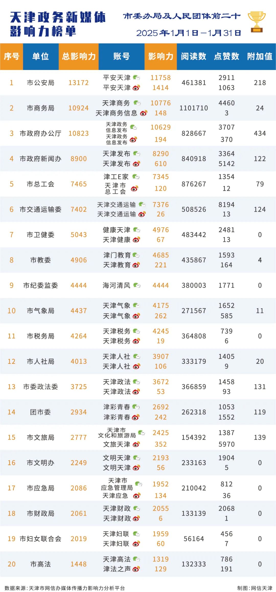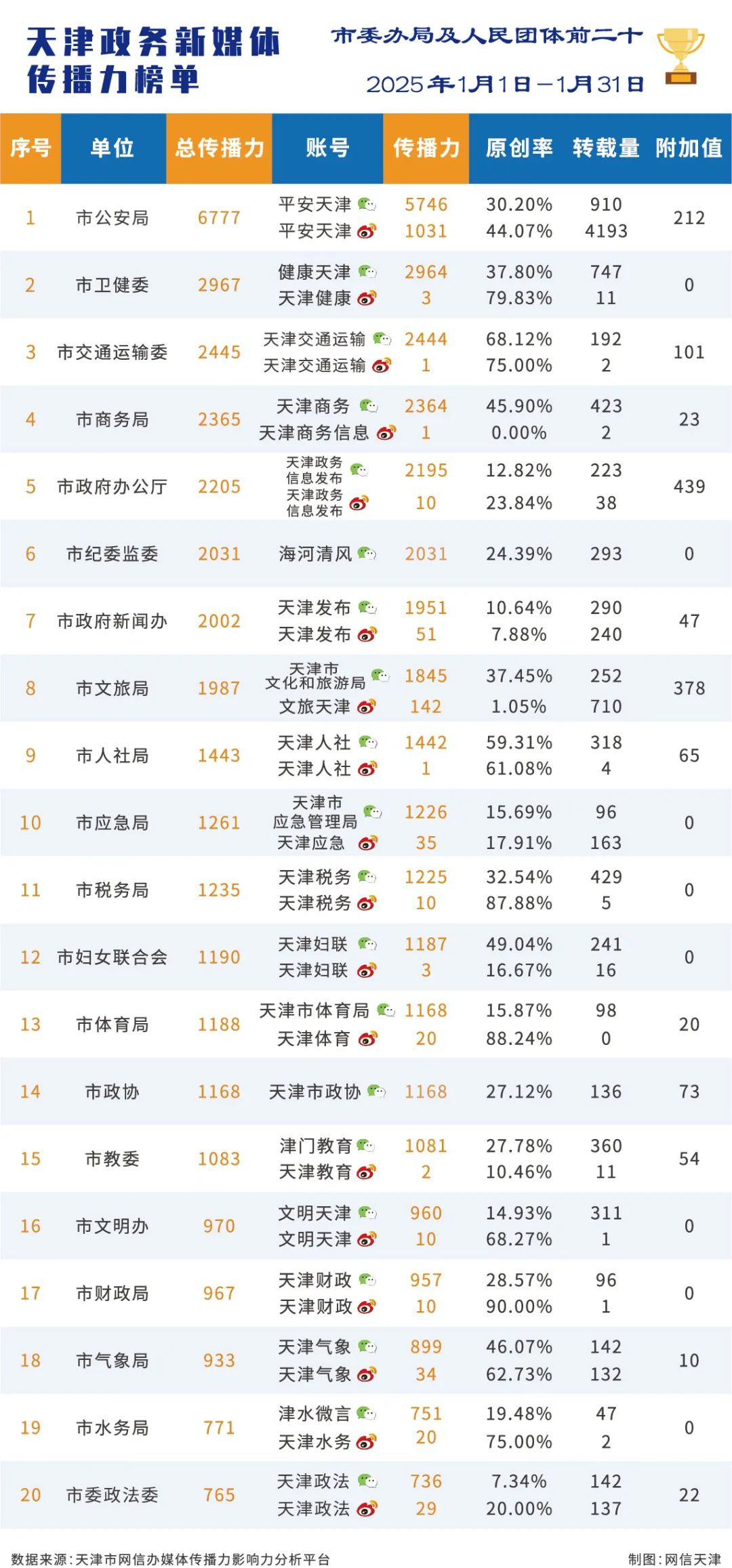 | 2025年1月份天津政务新媒体传播力影响力榜单 |