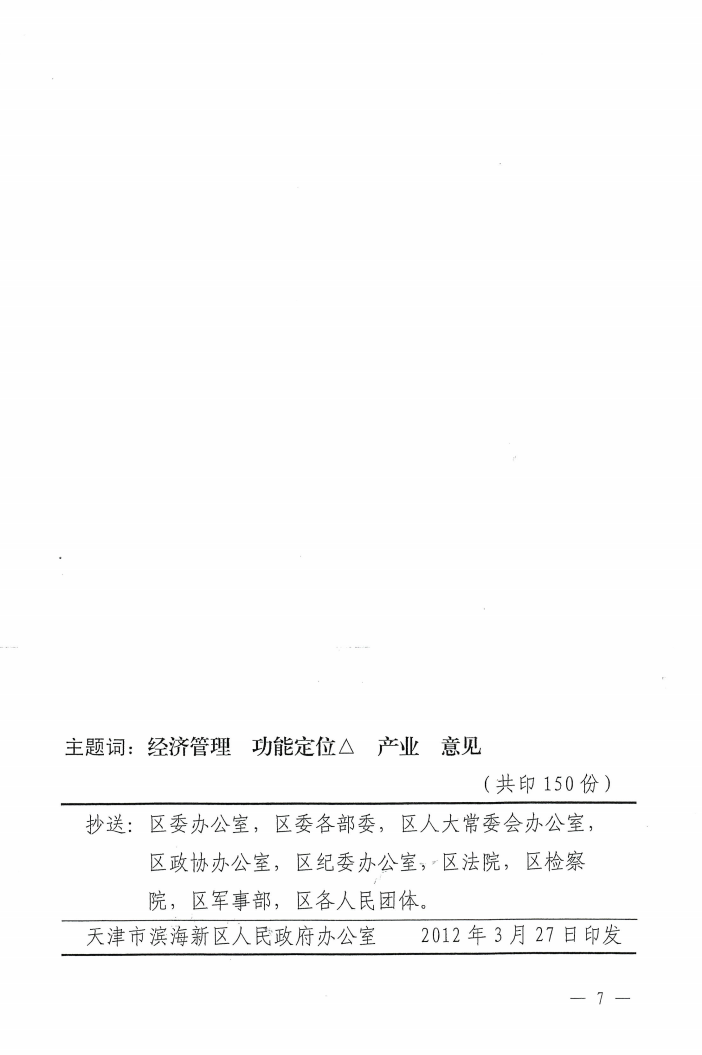 《关于明确滨海新区各区域功能定位及产业发展重点的指导意见》(津滨政办发〔2012〕21号)为需清理的行政规范性文件。现拟以“文件有效期已过或者调整对象已经消失的,应宣布失效”为由,对上述需清理文件提出宣布失效的清理建议,并面向社会公开征求意见。