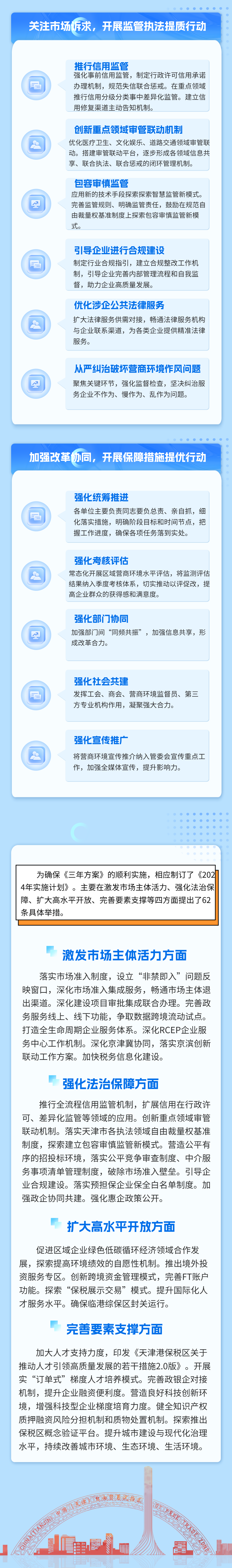 相关文件:天津港保税区管理委员会关于印发《天津港保税区打造市场化法治化国际化营商环境三年行动方案(2024-2026年)》和 《天津港保税区优化营商环境 2024年实施计划》的通知