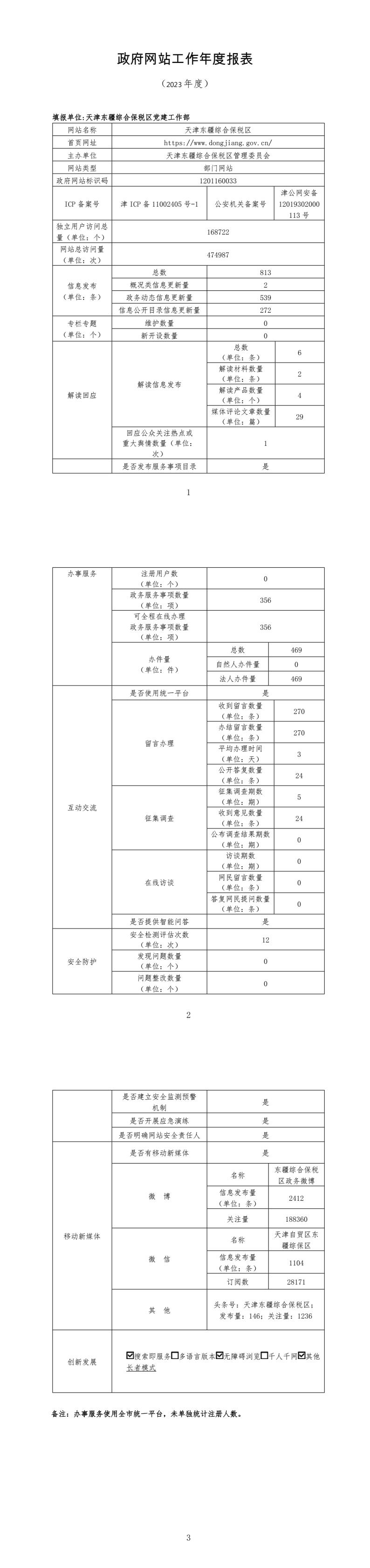 天津东疆综合保税区政府网站工作年度报表(2023年度)
