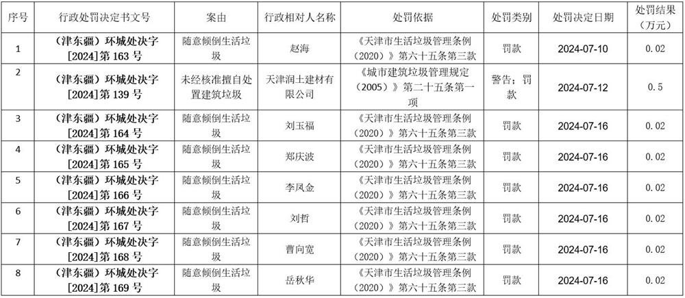 2024年7月10日至7月16日城市管理行政处罚信息