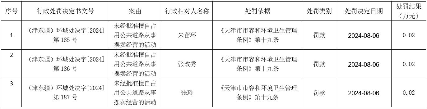 2024年8月6日城市管理行政处罚信息