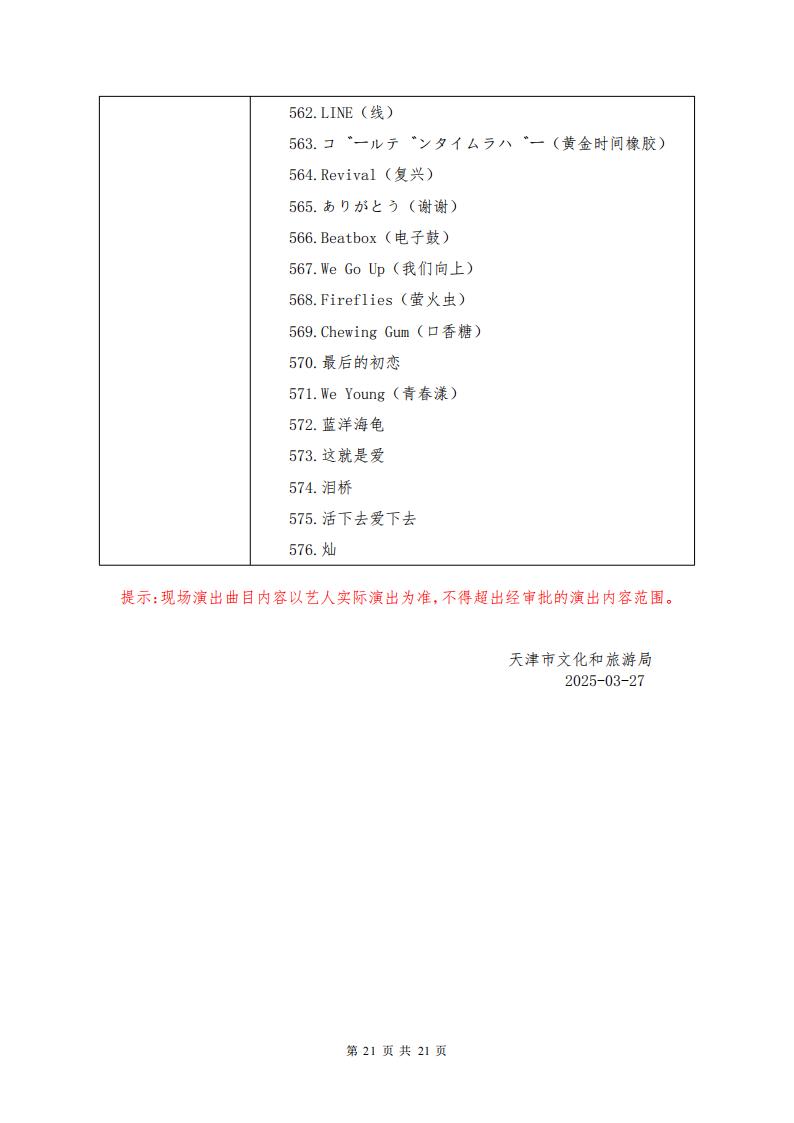 天津市营业性演出准予许可决定(120000522025000121)审批公示
