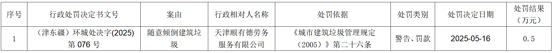 2025年5月16日城市管理行政处罚信息