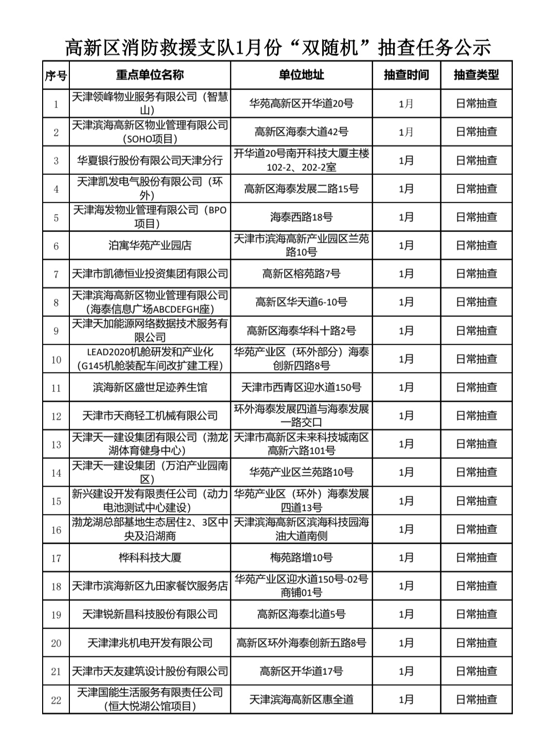 附件:高新区消防救援支队1月份“双随机”抽查任务公示.xlsx