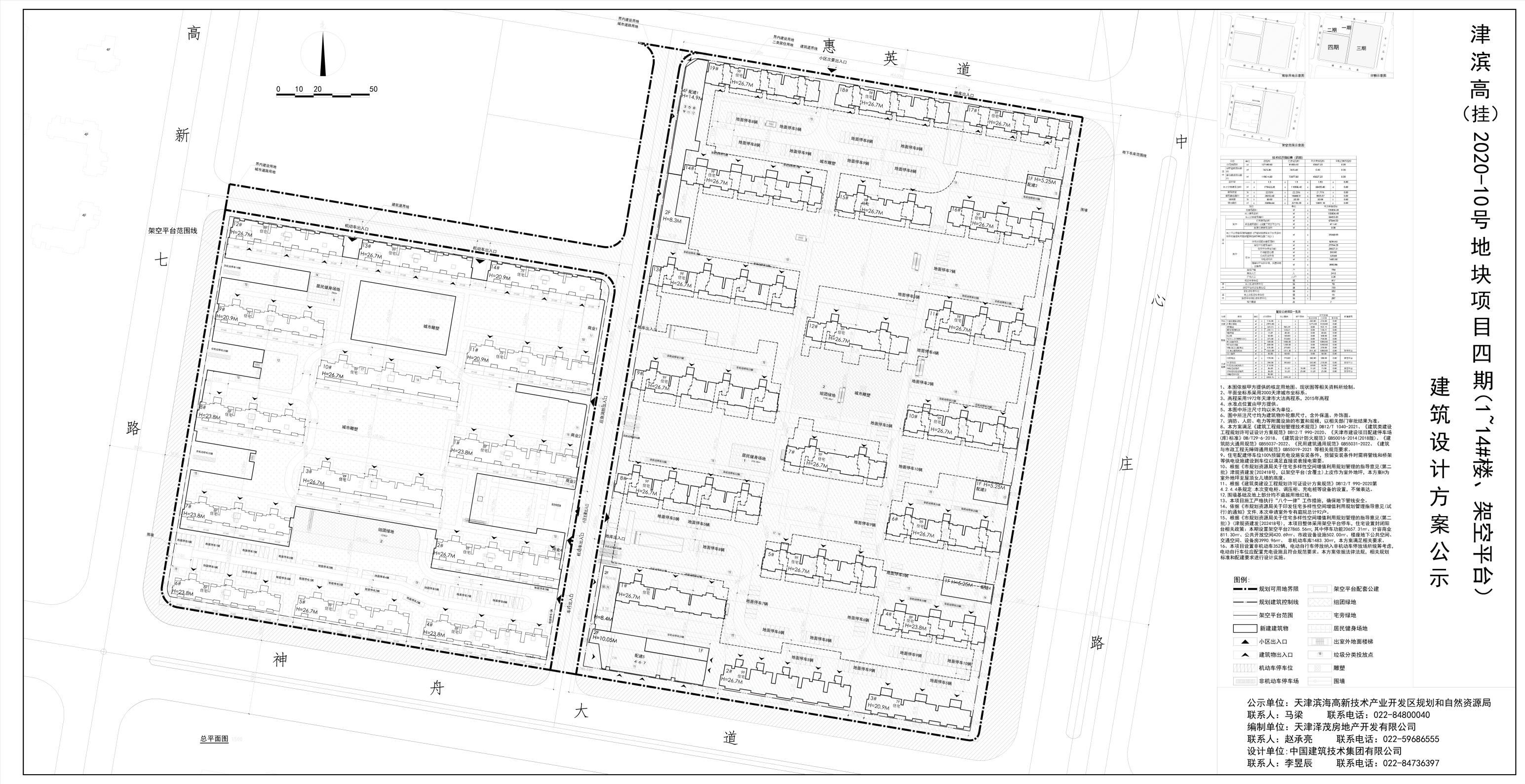 依据《中华人民共和国城乡规划法》和住建部《关于城乡规划公开公示的规定》的有关要求,现将天津泽茂房地产开发有限公司津滨高(挂)2020-10号地块项目四期(1-14#楼、架空平台)项目建筑设计方案总平面图草案进行公示,公示时间共7个工作日。
