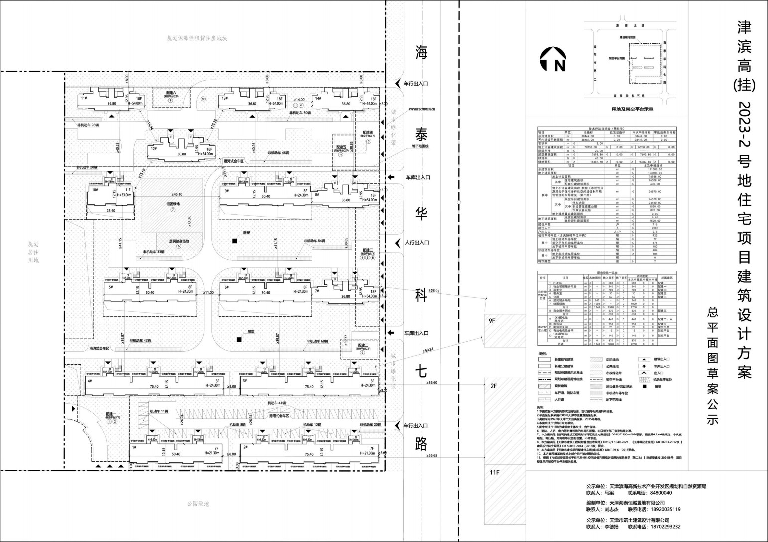天津海泰恒诚置地有限公司津滨高(挂)2023-2号地住宅项目建筑设计方案总平面图草案