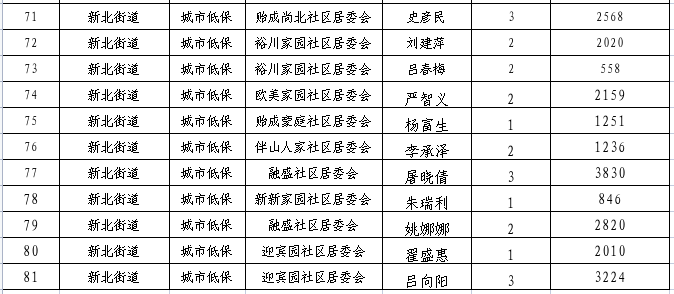 2023年12月份新北街道特困供养待遇人员、低收入待遇人员、最低生活保障待遇人员