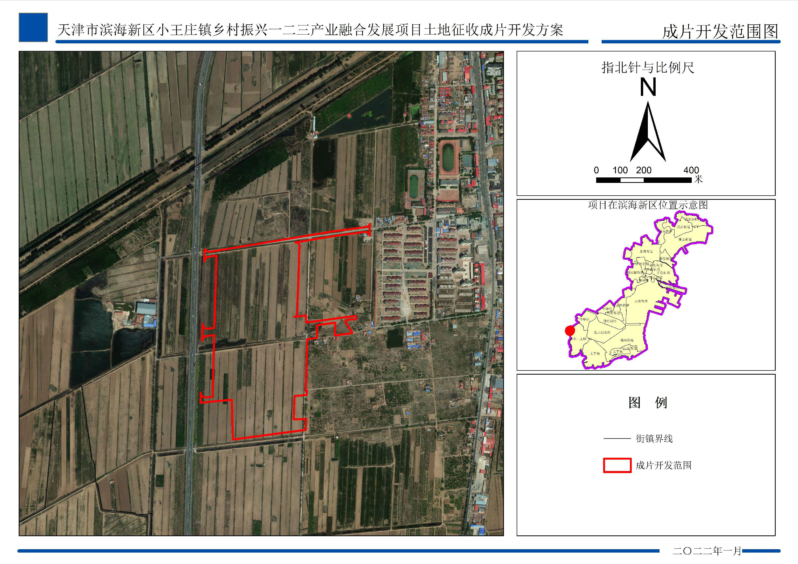 根据2020年1月1日起实施的《中华人民共和国土地管理法》第四十五条规定、自然资源部《土地征收成片开发标准(试行)》(自然资规〔2020〕5号)和《天津市土地征收成片开发标准实施细则(试行)》(津规资源发〔2021〕80号)要求,为做好成片开发用地土地征收工作,结合滨海新区实际,组织编制《天津市滨海新区小王庄镇乡村振兴一二三产业融合发展项目土地征收成片开发方案》。为增强重大行政决策的公开性、科学性和可操作性,提高决策质量,使公众了解、参与本项目的成片开发实施方案,现予以公示如下: