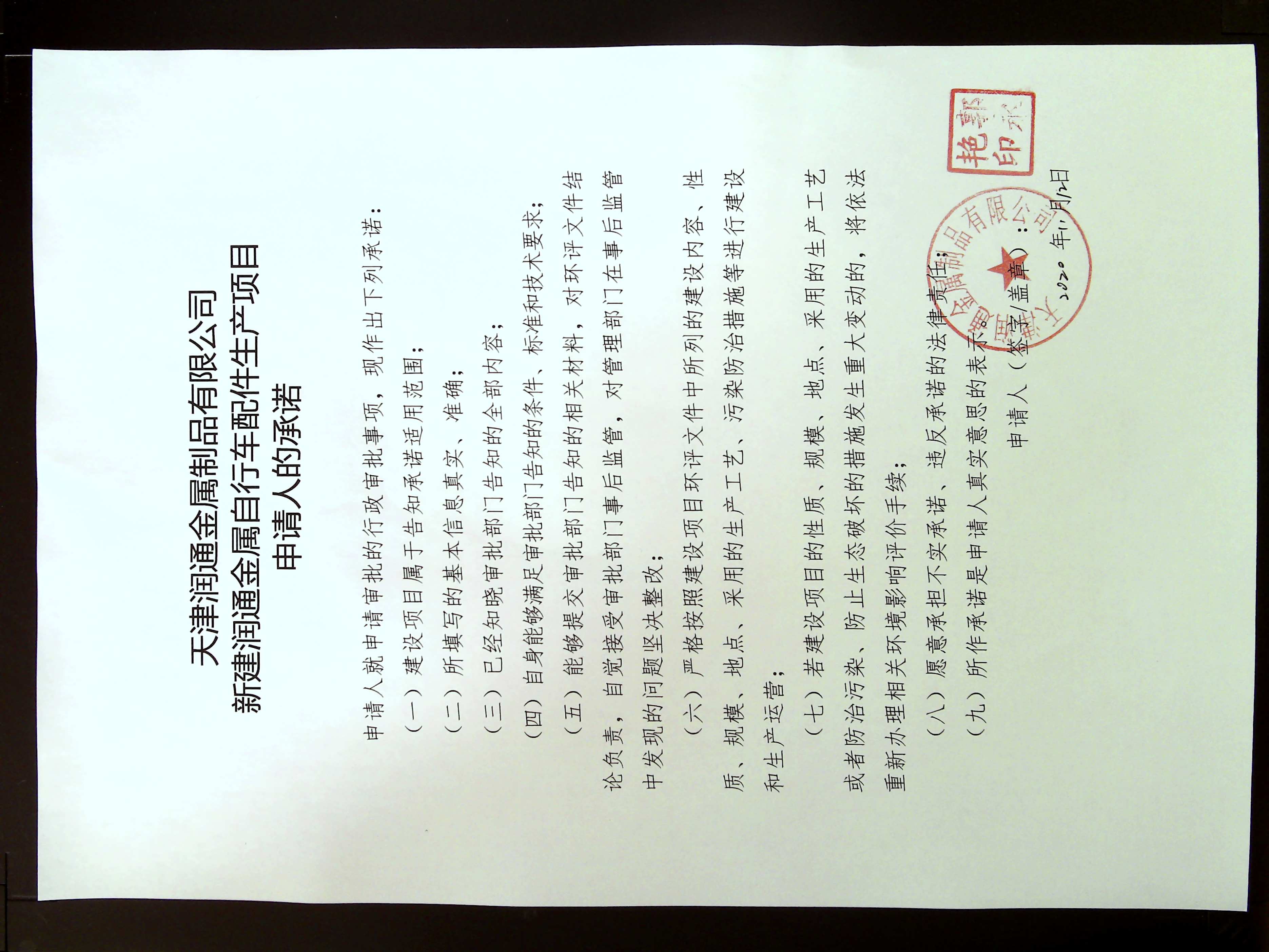 | 天津润通金属制品有限公司新建润通金属自行车配件生产项目环境影响报告表受理公示 |