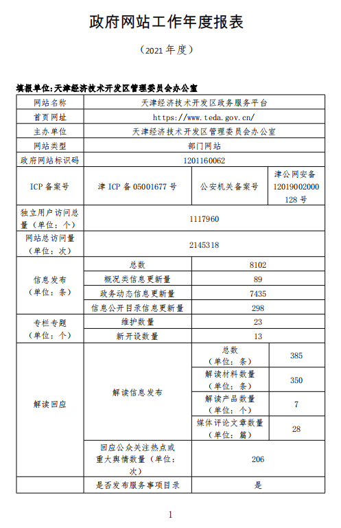 主办单位:天津经济技术开发区管理委员会 网站标识码:1201160062 | 备案序号:津ICP备05001677号 | 津公网安备 12019002000128 联系方式:xxgk@teda.gov.cn | 推荐使用IE8及以上版本浏览器浏览