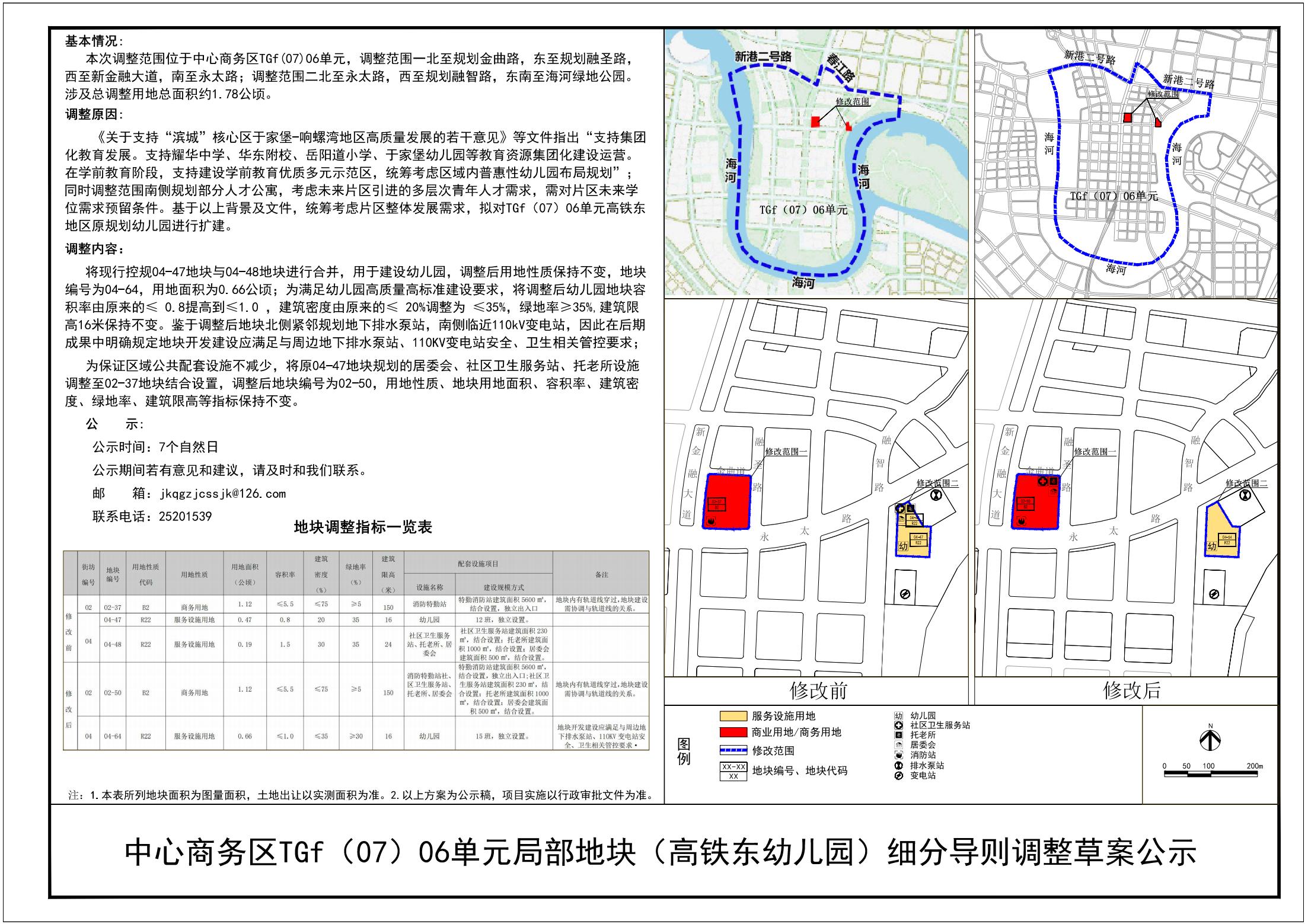 中心商务区TGf (07)06单元局部地块 (高铁东幼儿园)细分导则调整草案公示