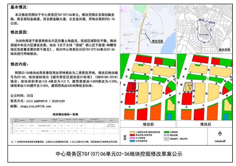 中心商务区TGf(07)06单元02-36地块控规修改草案公示