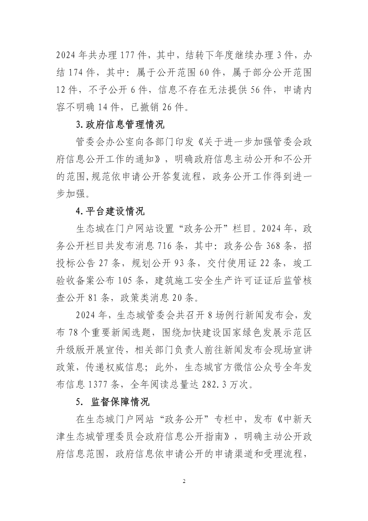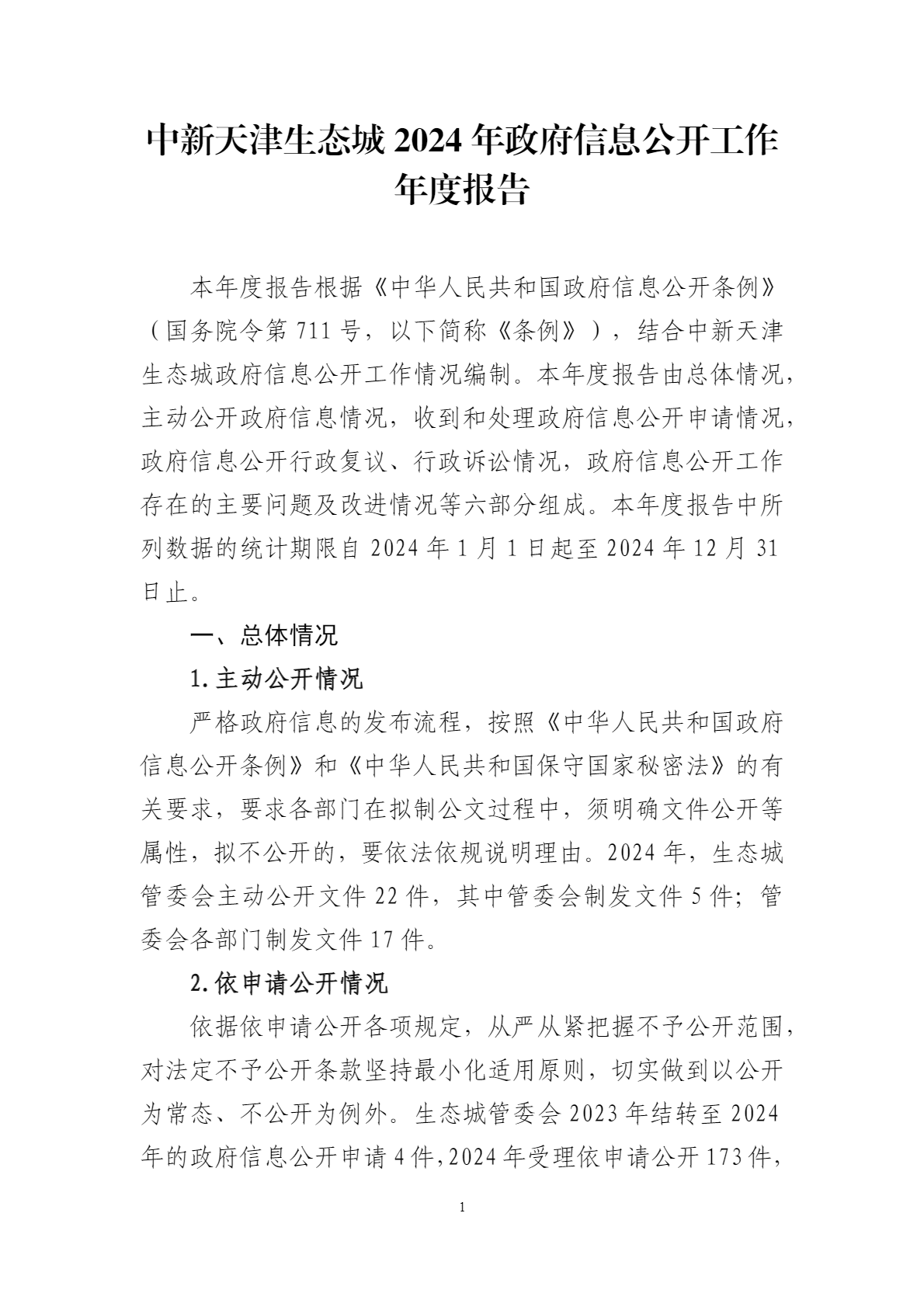 中新天津生态城政府信息公开工作年度报告(2024年度)