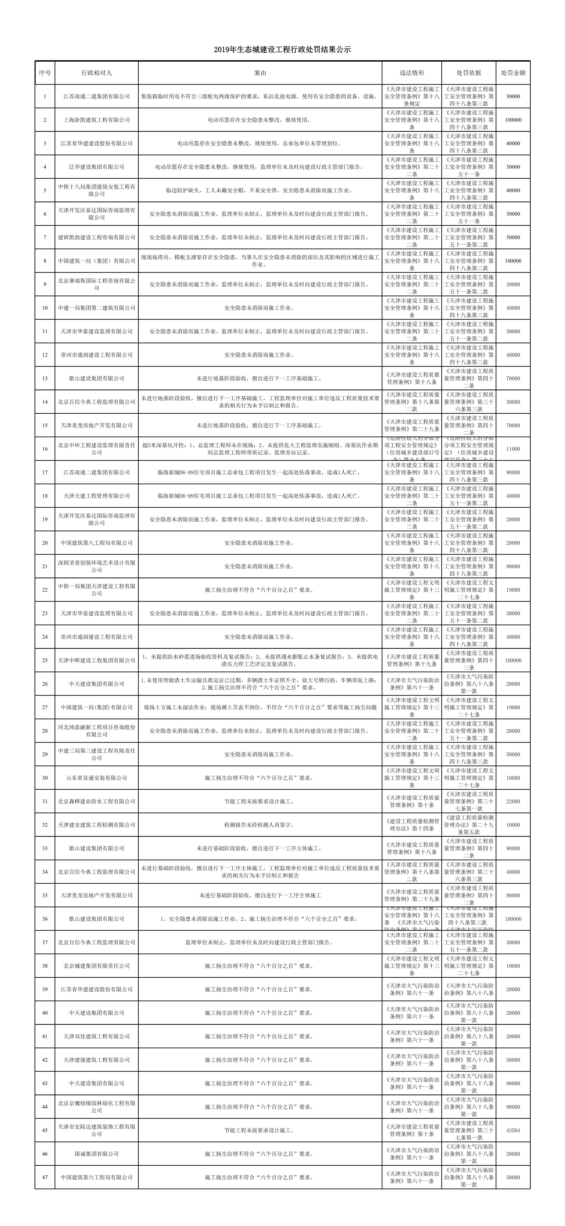 2019年生态城建设工程行政处罚结果公示(1-9月份)