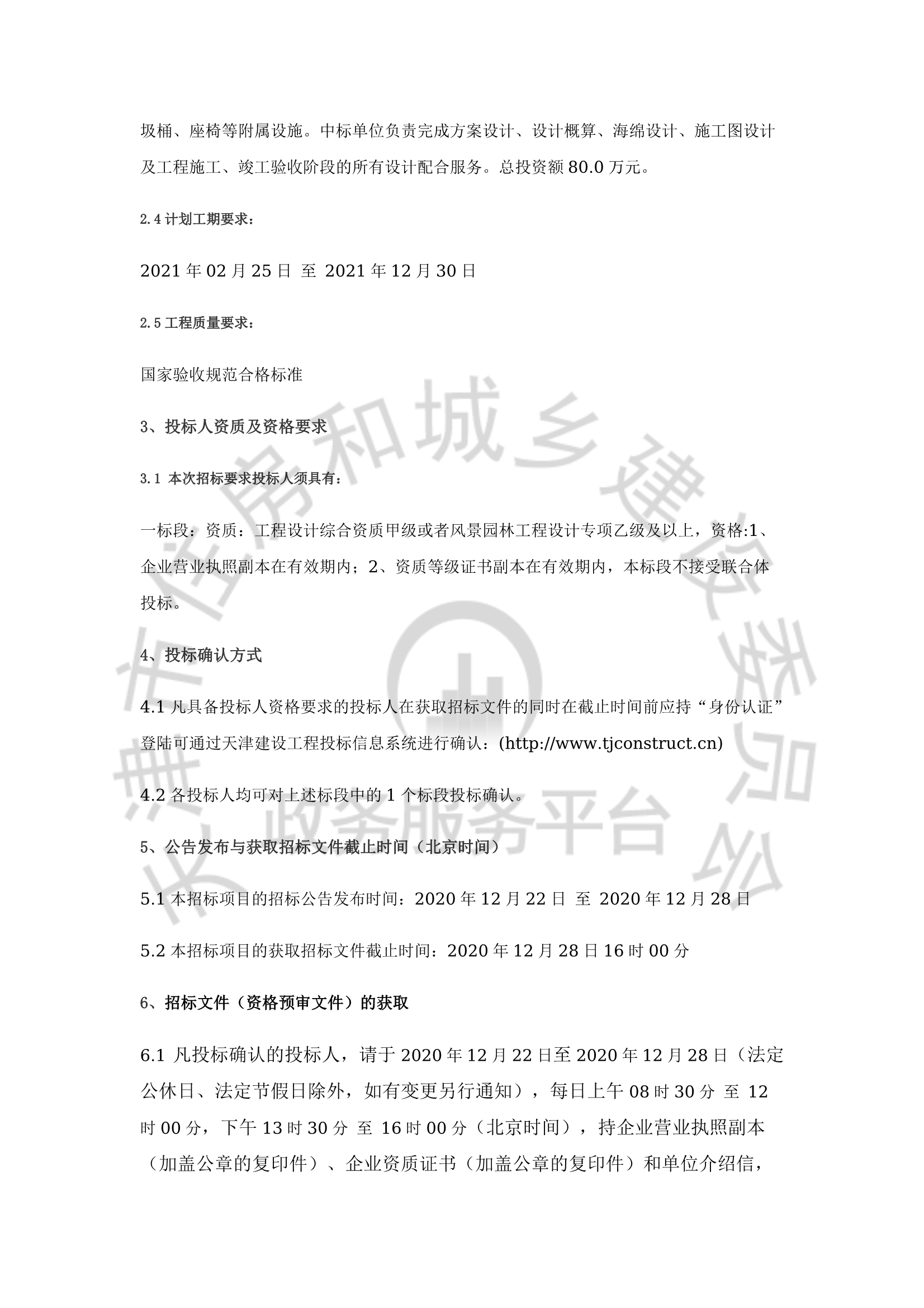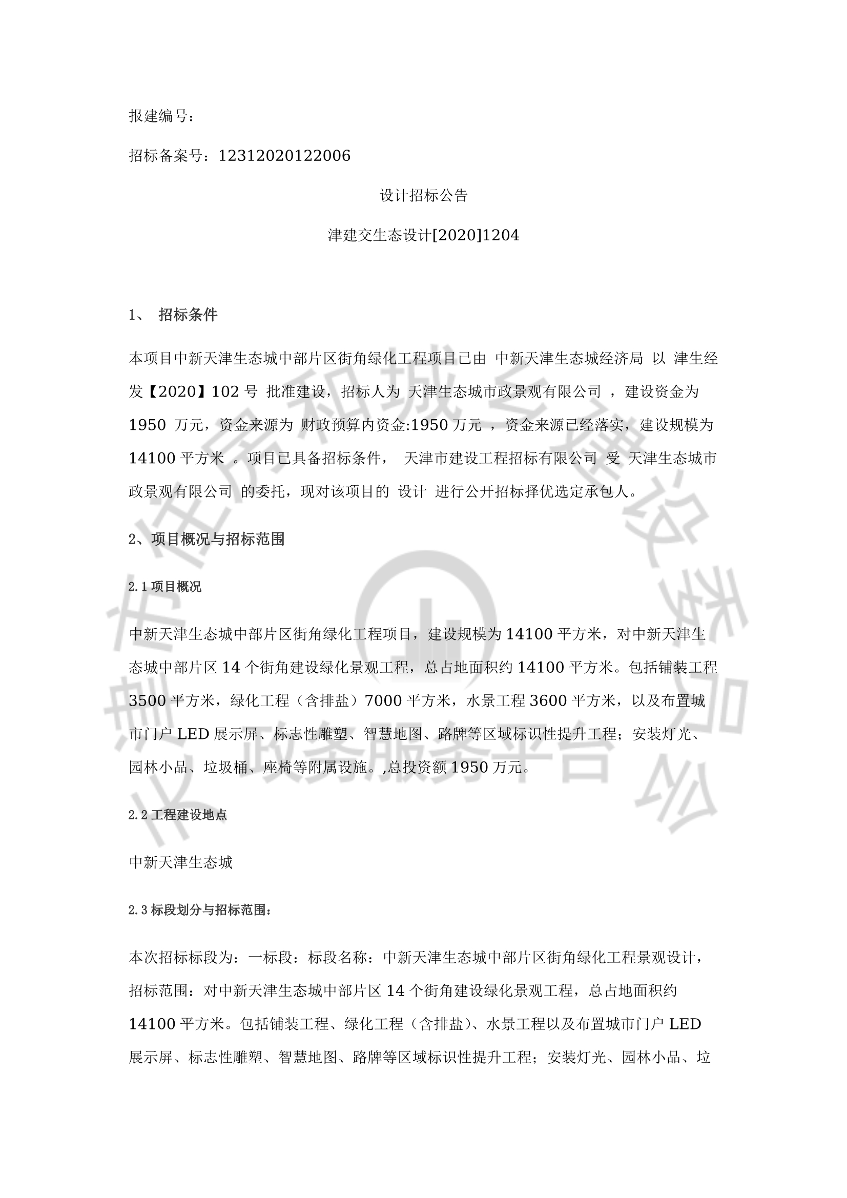 中新天津生态城中部片区街角绿化工程景观设计招标公告