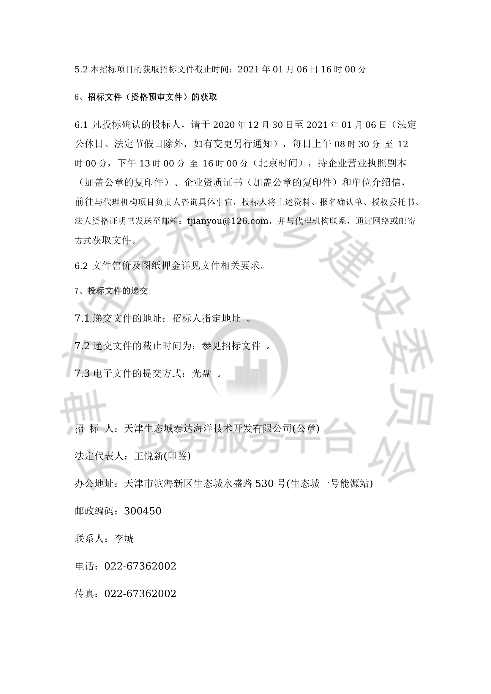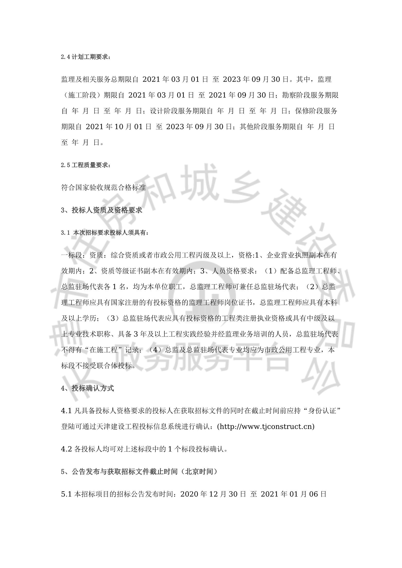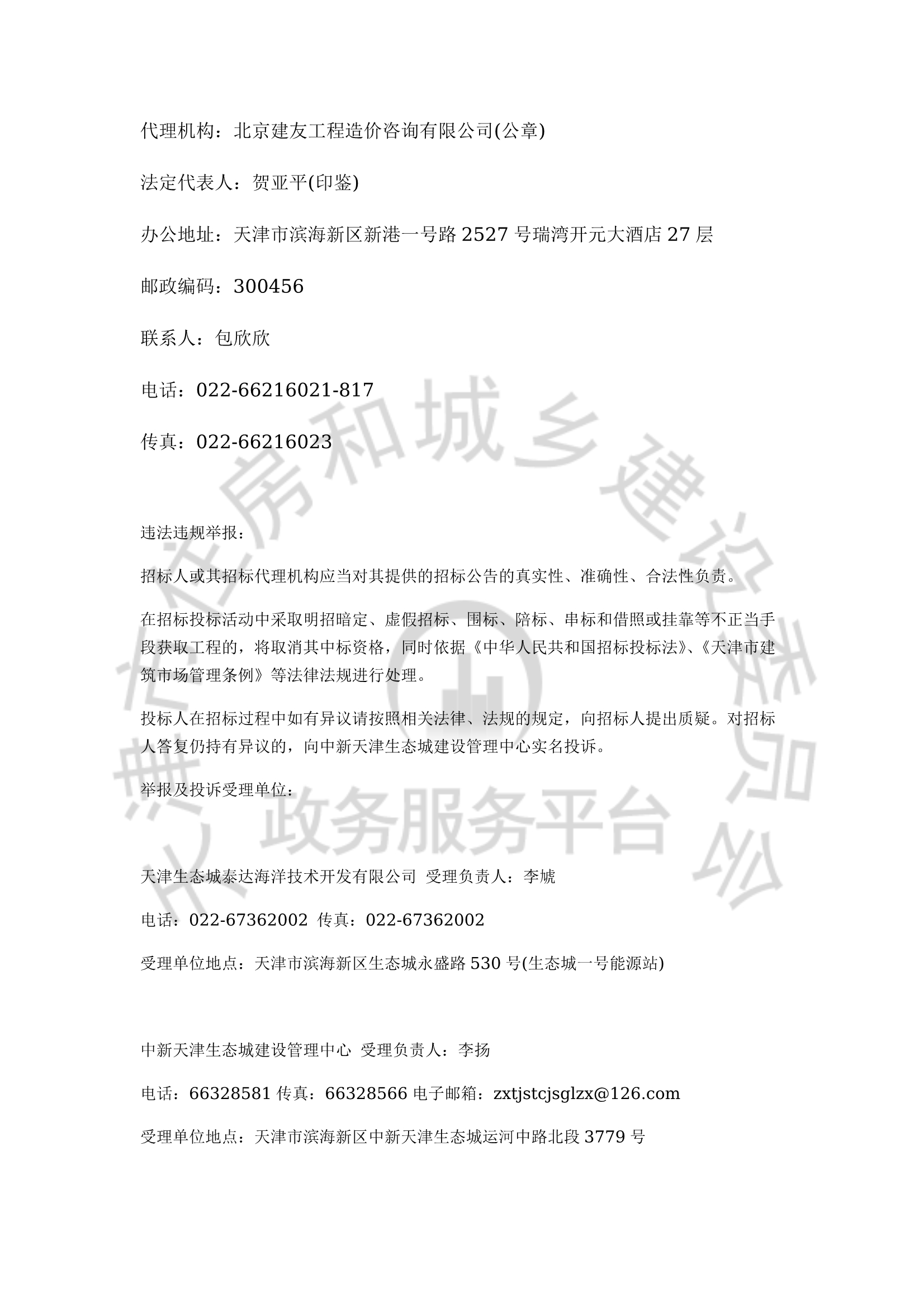中新天津生态城临海新城2020年用户一次网及换热站配套工程监理招标公告