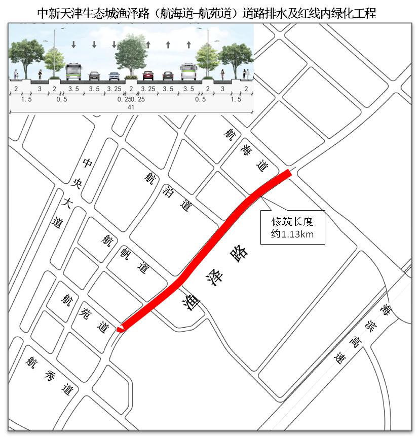 中新天津生态城渔泽路(航海道-航苑道)道路排水及红线内绿化工程(道路工程)申报建设工程规划许可证公示
