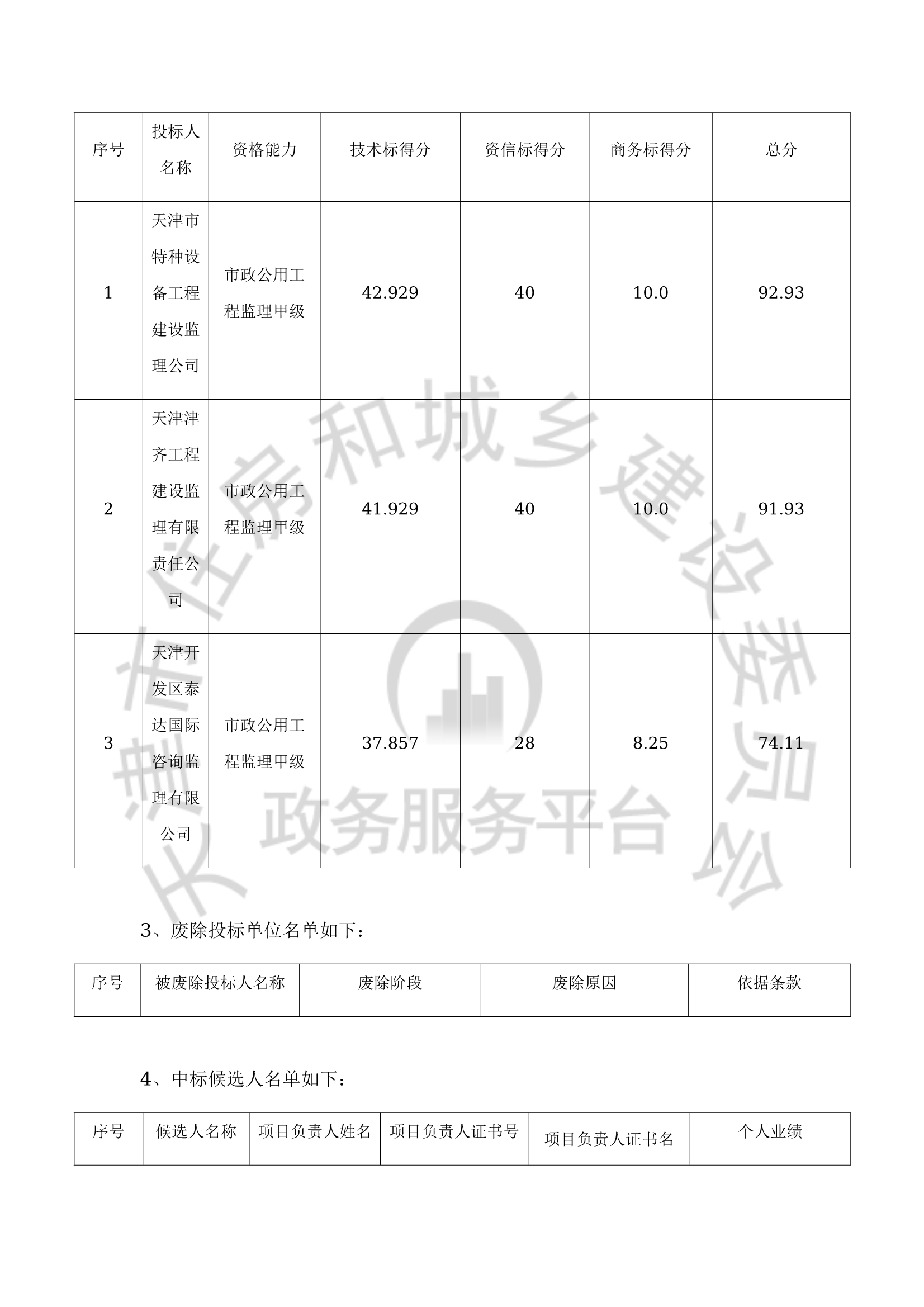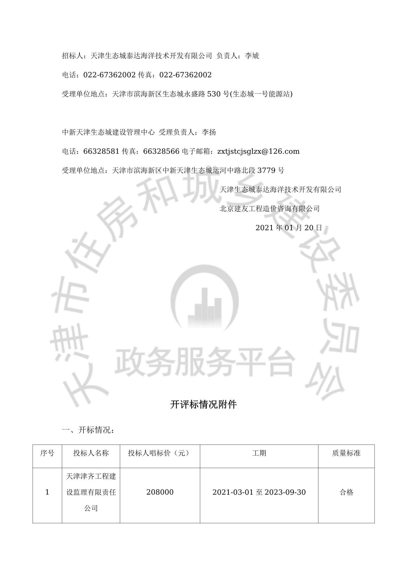 中新天津生态城临海新城2020年用户一次网及换热站配套工程监理中标公示