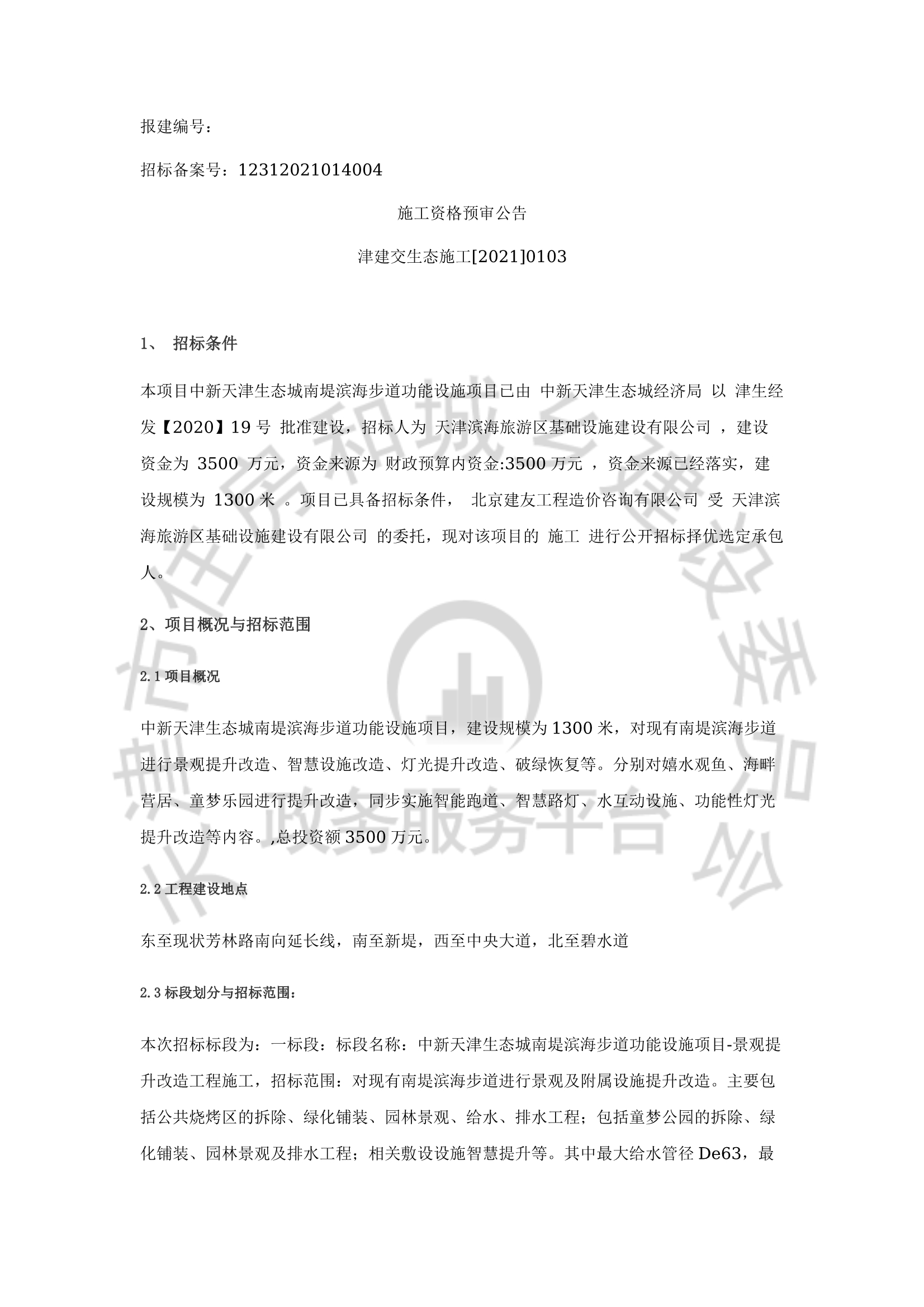 中新天津生态城南堤滨海步道功能设施项目-景观提升改造工程施工招标公告