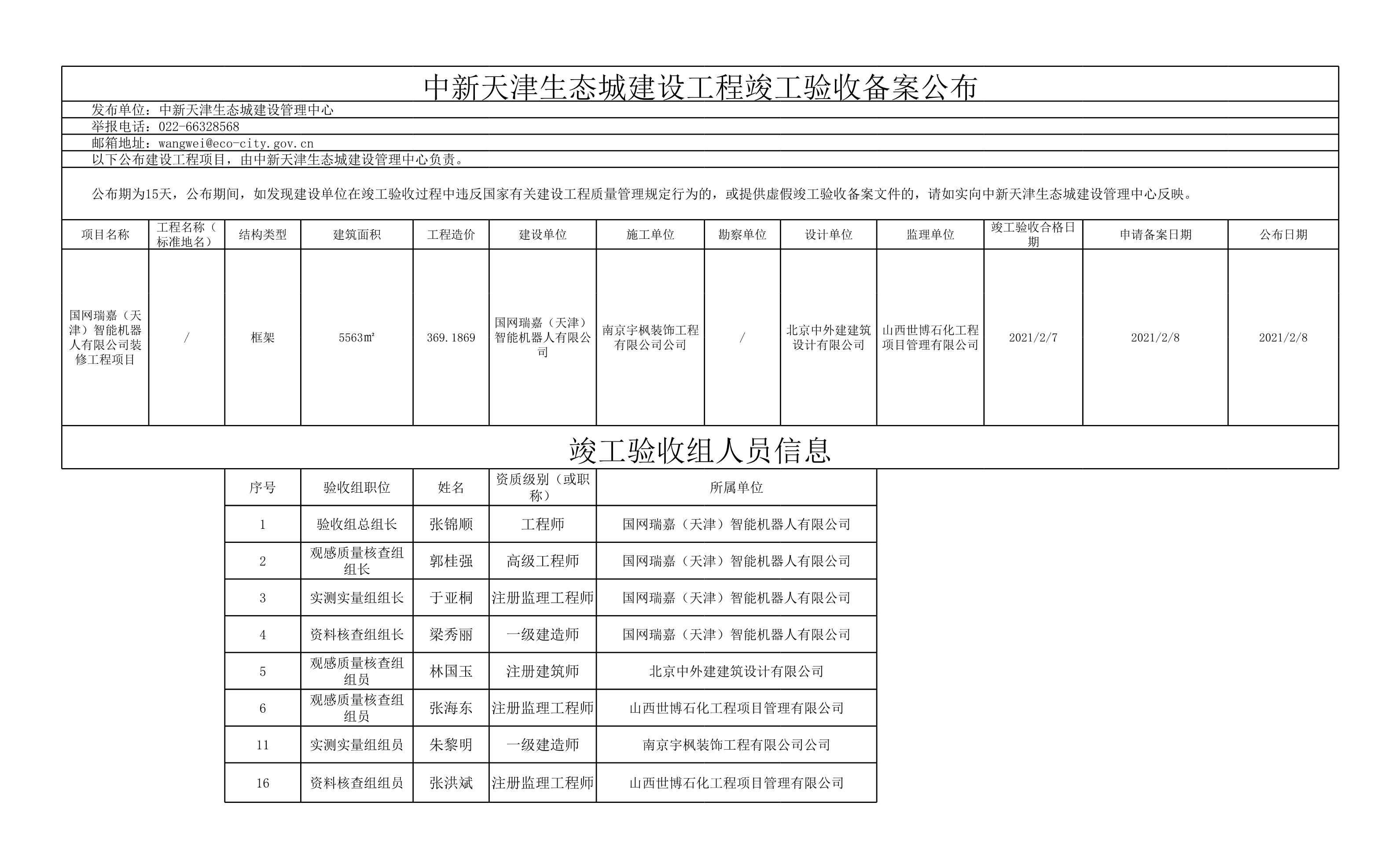 国网瑞嘉(天津)智能机器人有限公司装修工程项目竣工验收备案公布